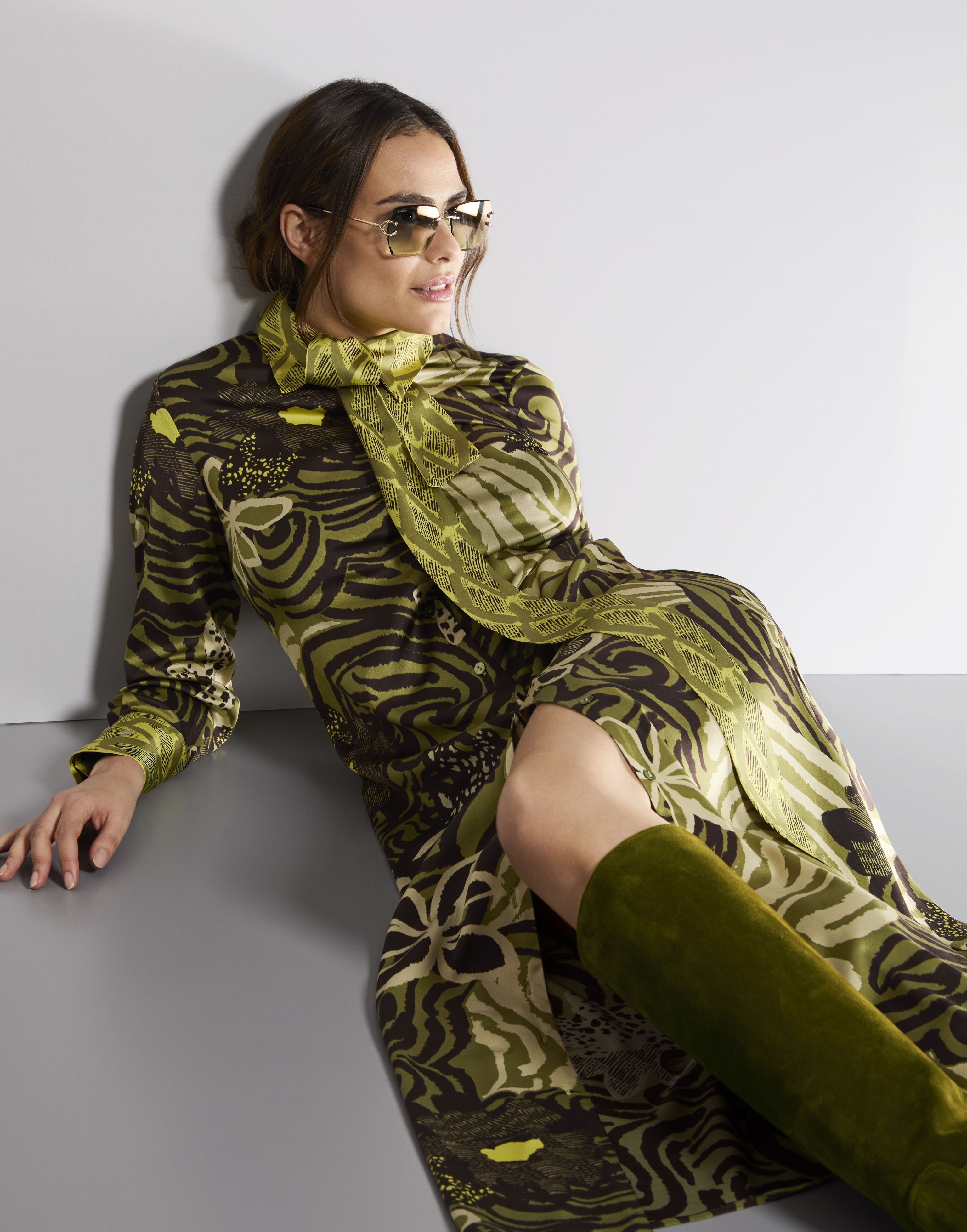 Unsere Kleider in verschiedensten Grüntönen setzen ein klares Statement und definieren den Saisonlook mit natürlicher Eleganz und modischer Tiefe. Ob als fließendes Maxikleid mit femininer Geste, als legere Midilänge für den Alltag oder als selbstbewusstes Minikleid, die Silhouetten zeigen sich wandelbar und vielseitig kombinierbar.